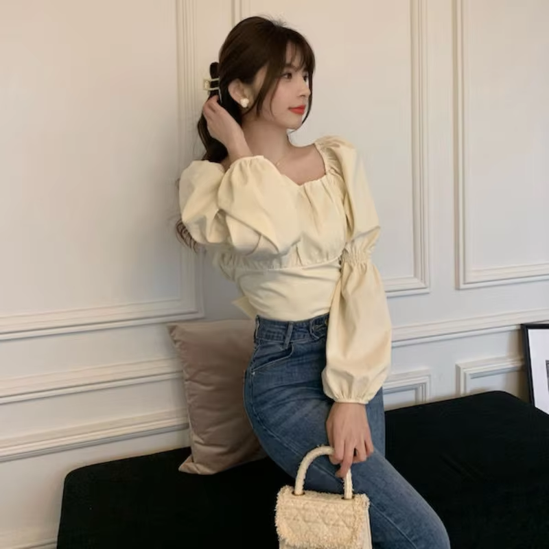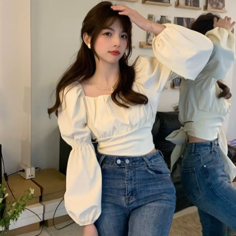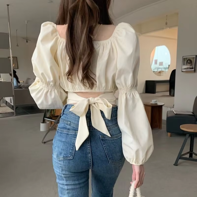 Back-bow Blouses Women Spring Chic Cropped Simple Solid Hot Sale Feminine Korean Style Leisure Streetwear Basic Mujer Blusas Ins