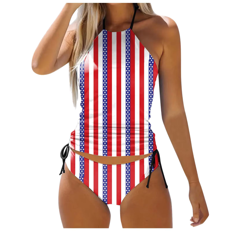 Women's Split Swimsuit Set Independent Day Printed Split Bikini Beach Set