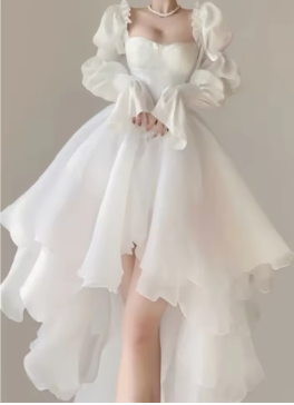 Elegant Heavy Off Shoulder Dresses Early Spring New White Dress for Women Y2k Slim Waist Long Sleeve Vestidos De Mujer