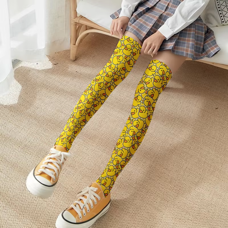 Fashion yellow cartoon duck women's stockings 3d printing Harajuku Lolita JK girl in knee stockings Kawaii sweet stockings