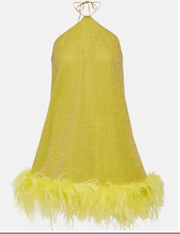 Feather Mini Dresses Sparkly Short Dress Women Sleeveless Naked Waist Dress Summer Party Evening Female Vestidos