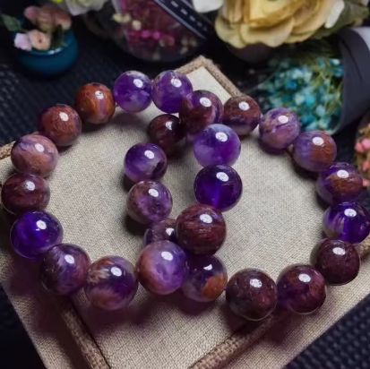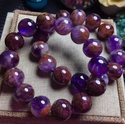 Genuine Natural Cacoxenite Quartz Purple Phantom AAAAA Round Beads Women Stretch Bracelets Fashion Reiki Rare Stone AAAAA