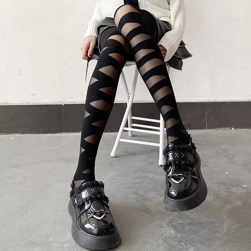 Gothic Cross Strap Sheer Pantyhose Tights Women Lolta Harajuku Temptation Knee JK Thigh High Socks Sexy Lolita Black Stockings