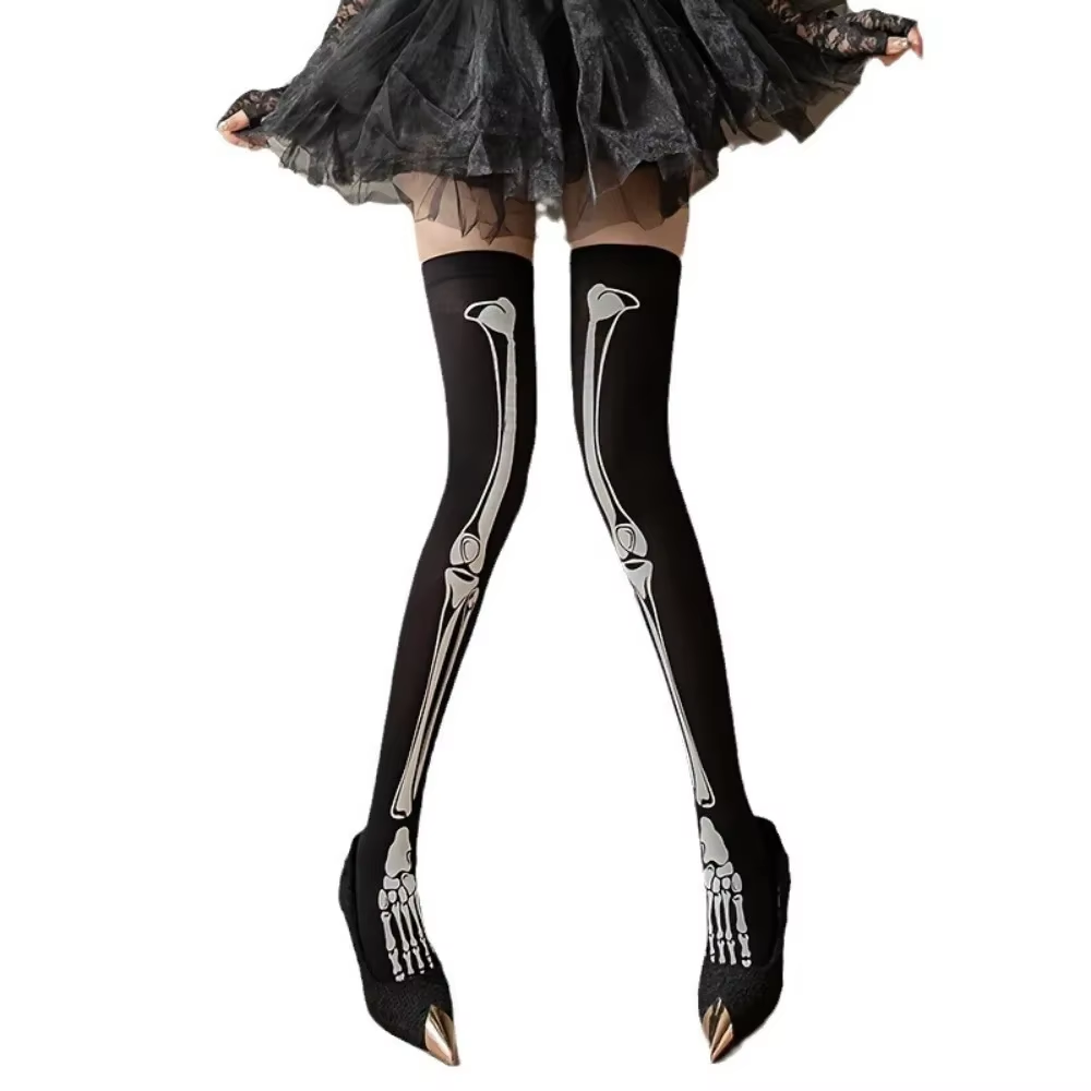 Harajuku Dark Skeleton Pattern Knee Socks Women Girl Gothic Punk Streetwear Goth JK School Casual Retro Fossil Leg Bone Long