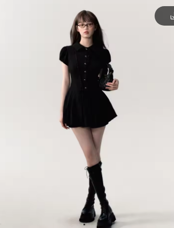 High Quality Dress Elegant Sexy Lace Decoration Retro Dress Vestido Y2k A-line Short Sleeved Shirt Skirt Commuting College Style