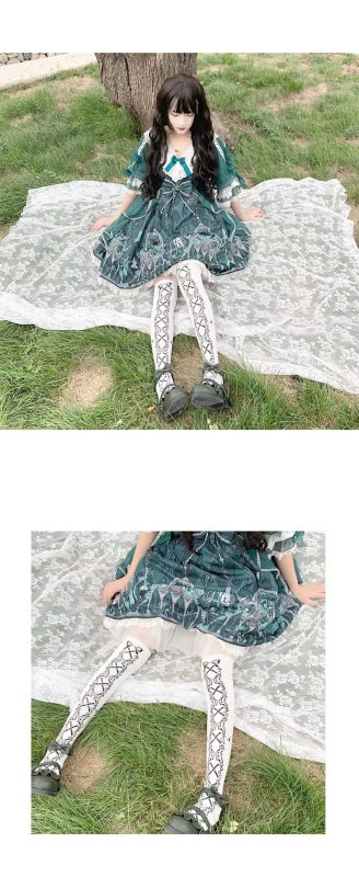 Lolita Socks JK Girl Cross Tie Bow Knee Socks Cosplay JK Stockings Over The Knee Socks Cute Cotton Thigh Socks High Lolita Socks
