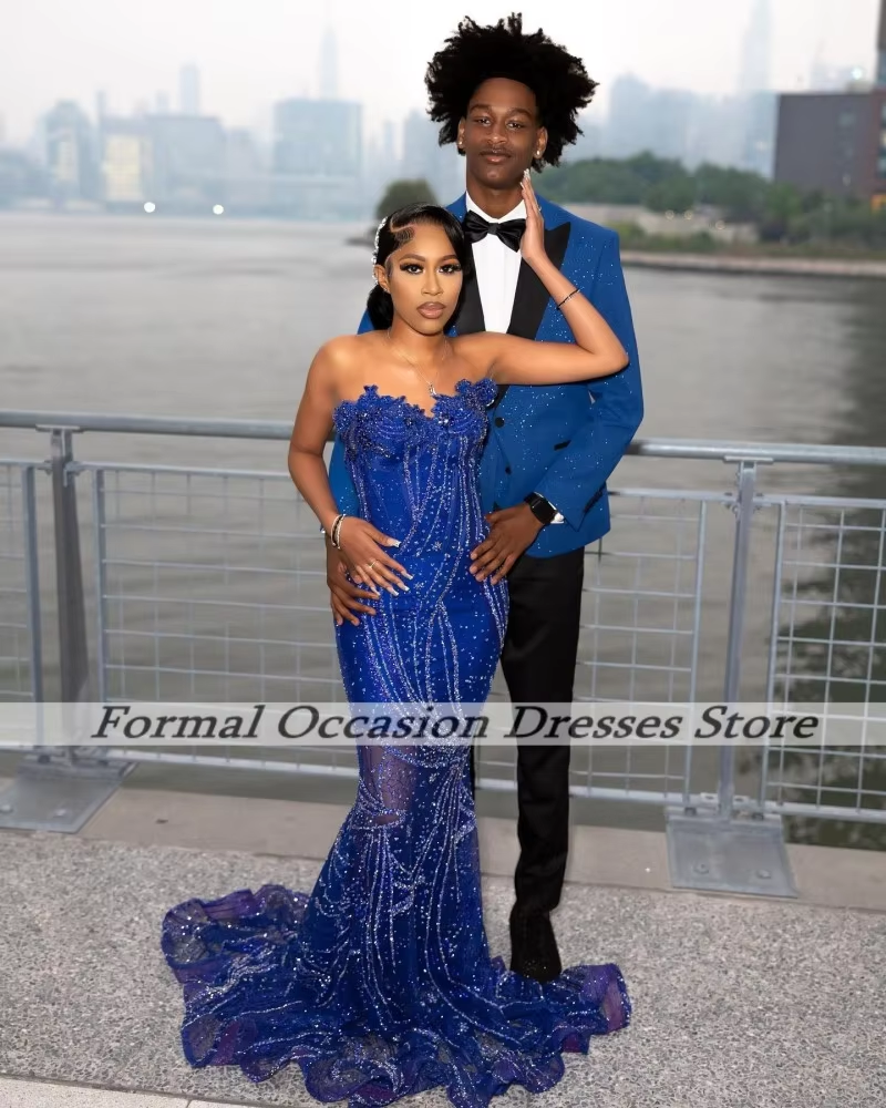 Luxury Blue Prom Dresses 2025 Sweetheart Sequin Beads Mermaid Party Gowns For Black Girls Maxi vestidos de graduación Customized