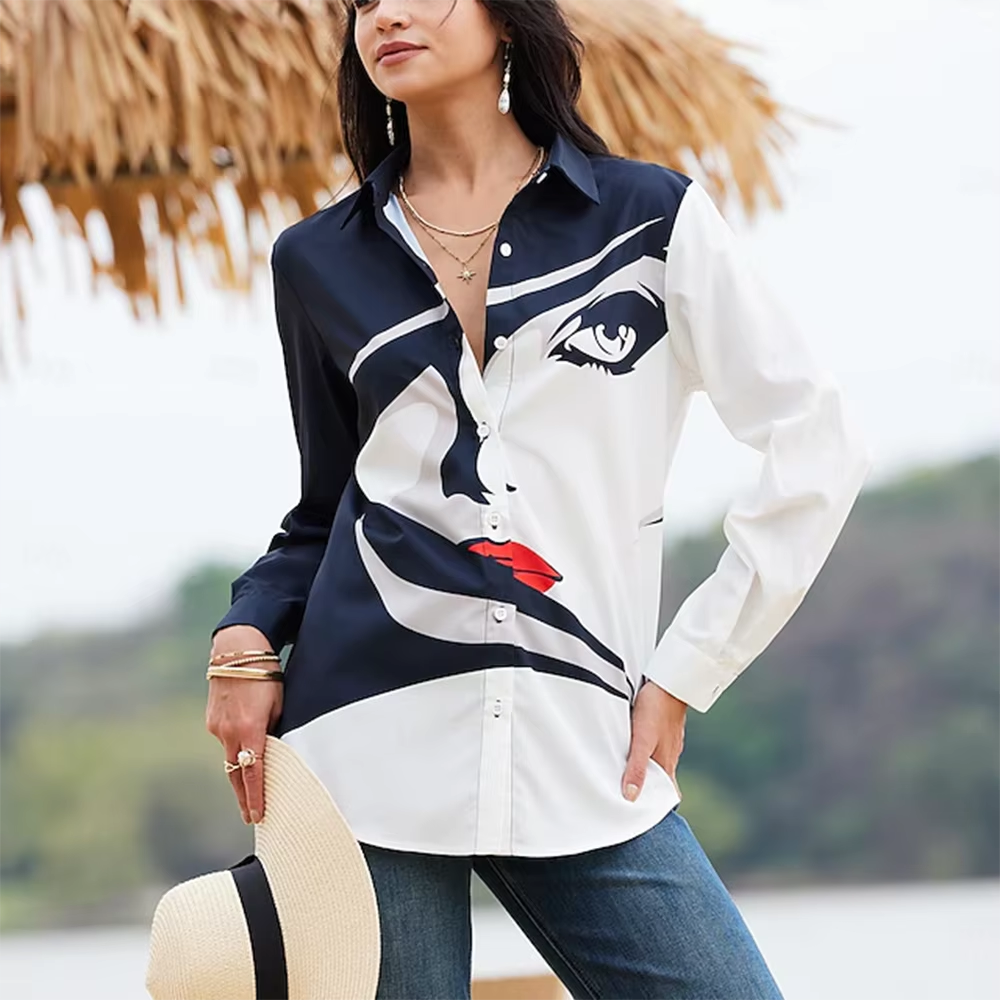 New Loose-fitting Long-sleeved Shirts For Women Fashionable Starry Sky Printed Elegant Casual Basic Tops Versatile Office Wear
