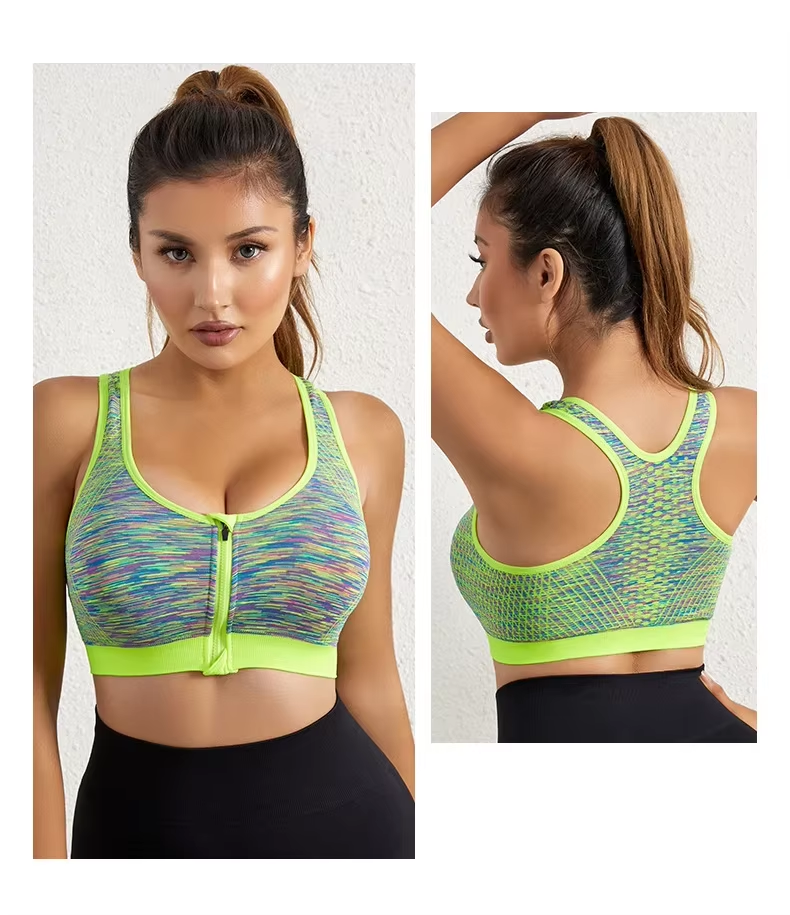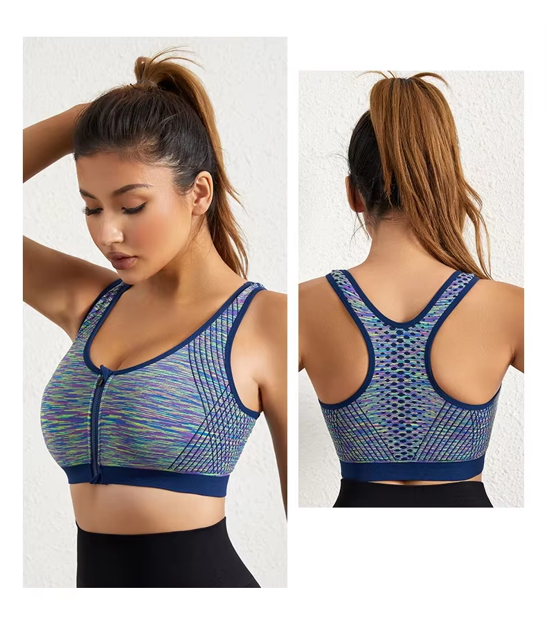 New Sports Bra Women Space Dyed Front Zipper Running Shockproof Vest Gym Jogging Crop Top Female Tops Sport Bras Sutian Feminino