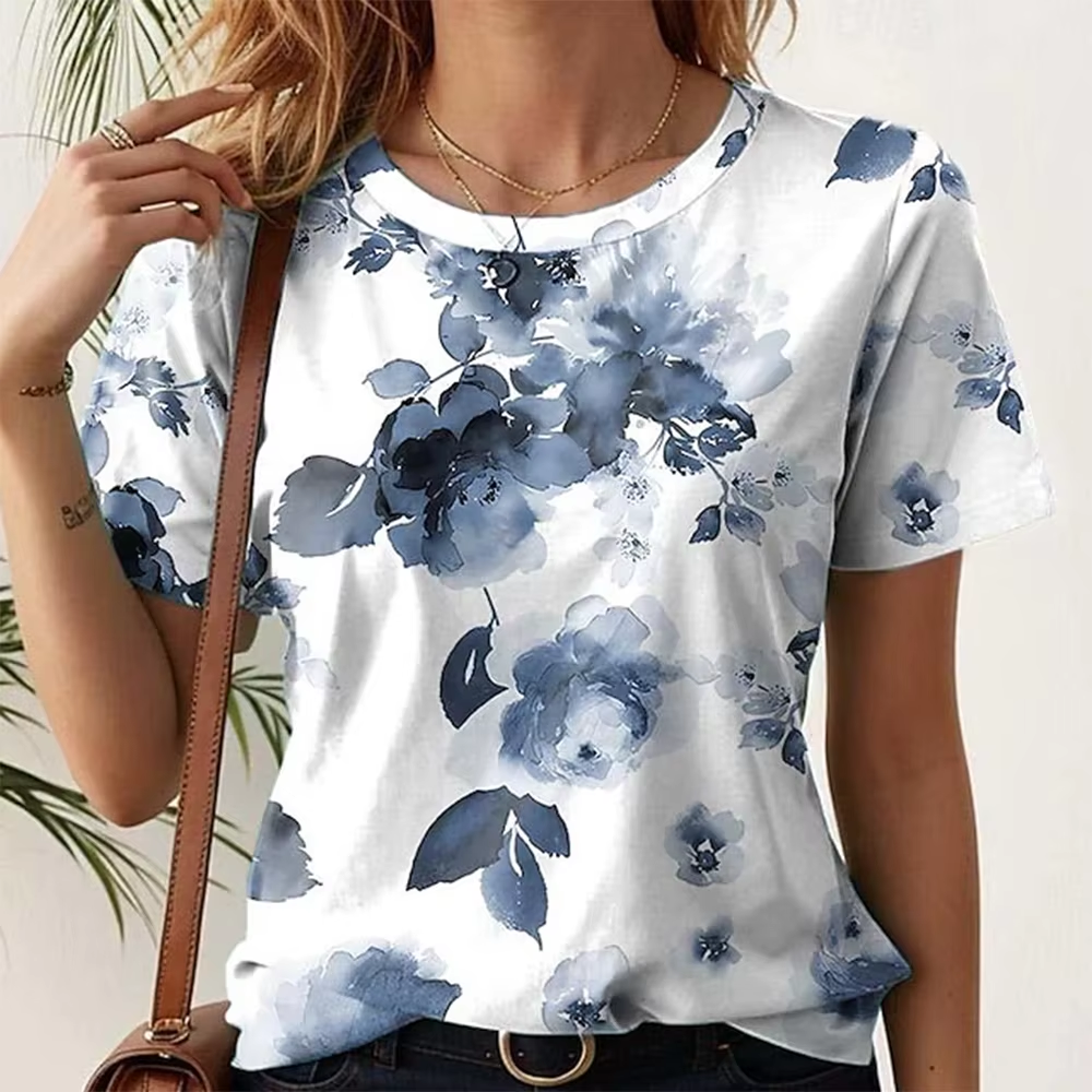 New Women's Casual Loose Short Sleeve T-Shirt 3d Flower Printed Summer Tops Elegant Crew Neck T-Shirt Harajuku Women Tees Tops