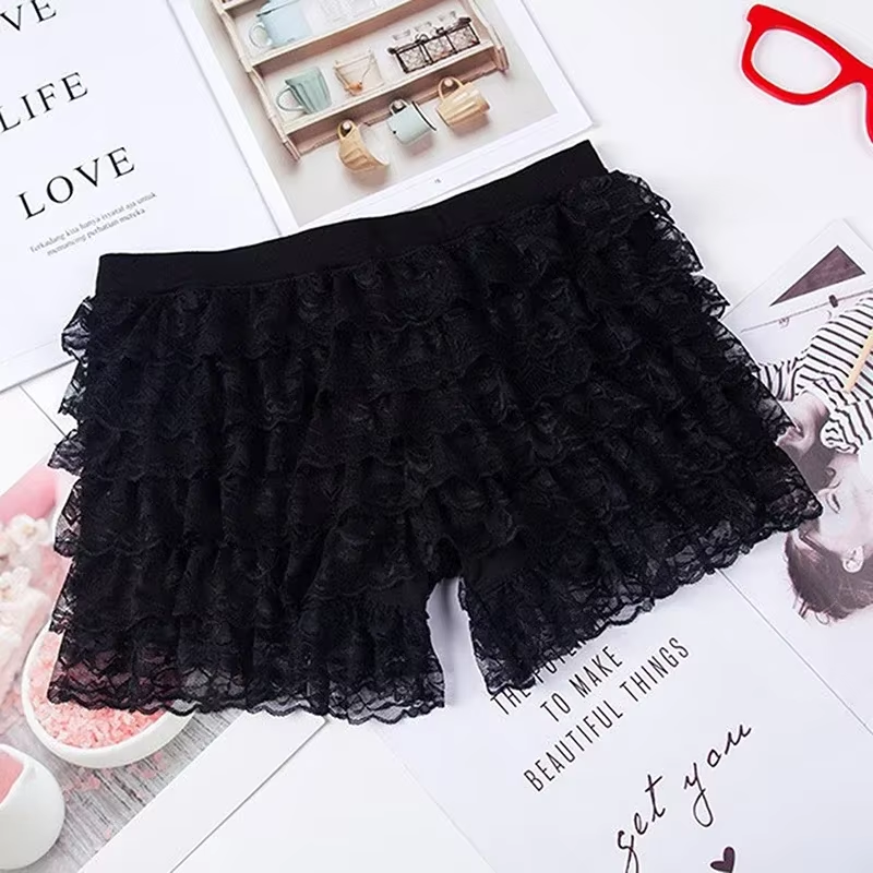 Ruffle lace safety short pant elastic Lolita casual bow safety shorts bottoming culottes anti-walking shorts summer thin section