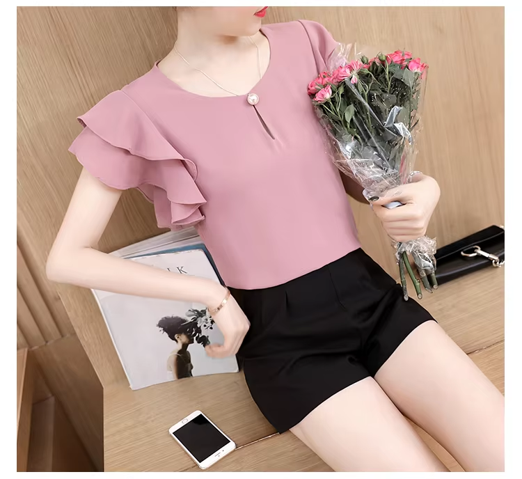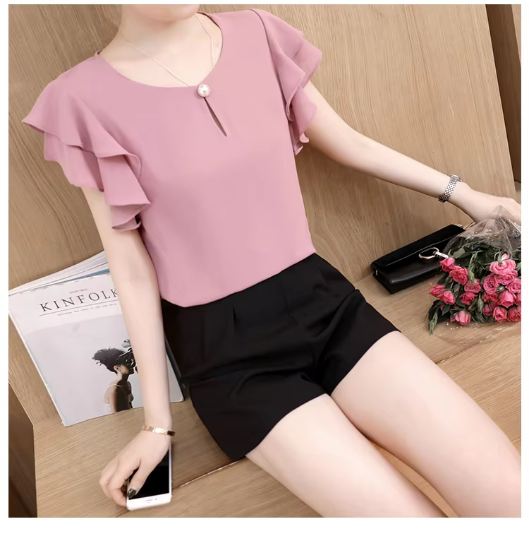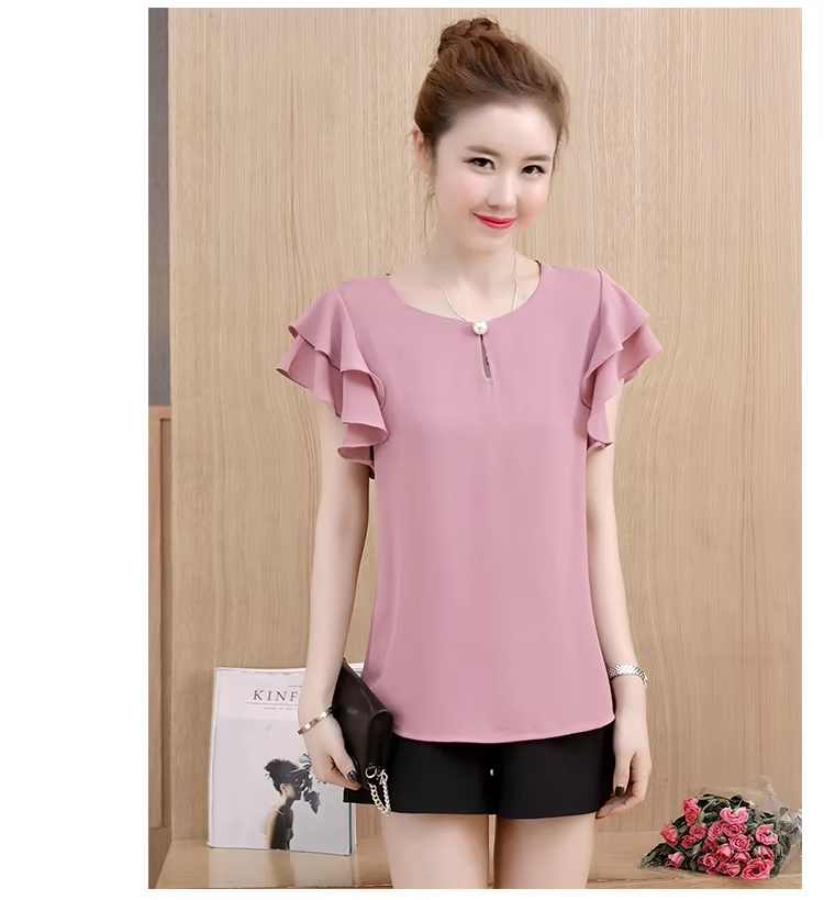 Summer Short Sleeve Blouse Shirt Women Tops Blusas Mujer De Moda 2024 Blouse Women O-Neck Chiffon Blouse Tops Women Shirts D198