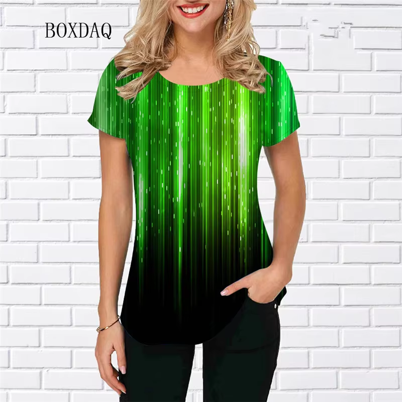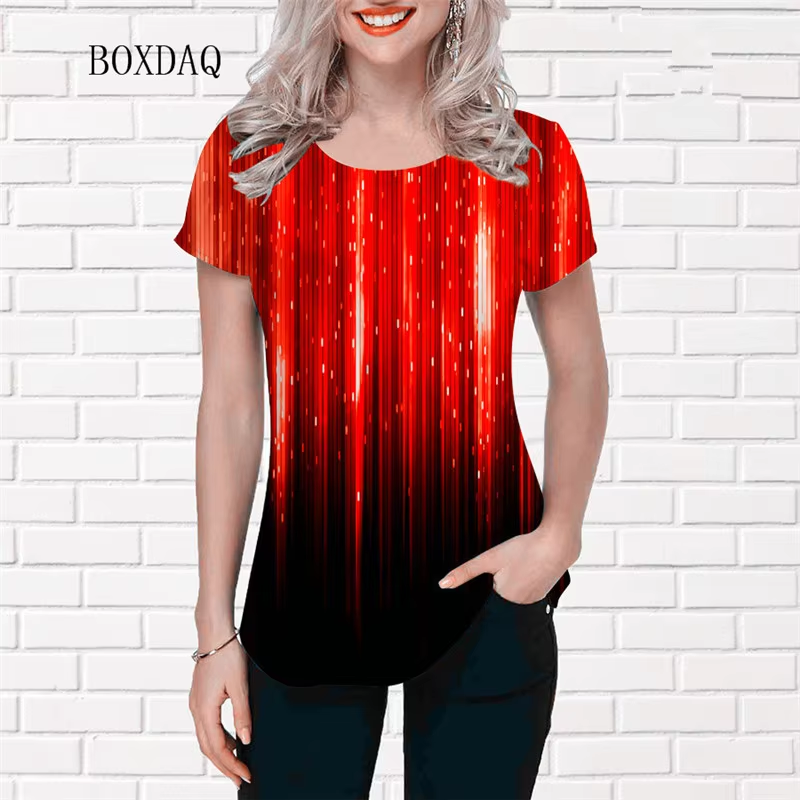 Tie-dye Gradient Women Fashion Red T-shirts Short Sleeve Round-Neck Street 3D Printed Ladies Tees Female Loose Oversized Tops