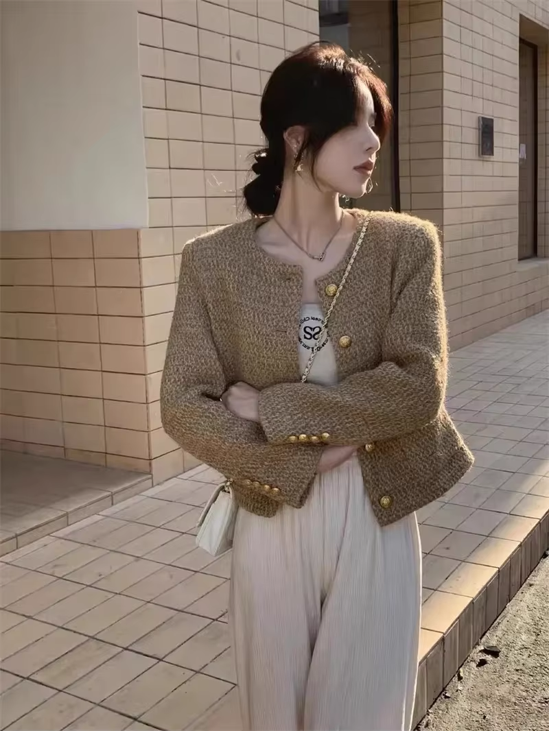 Vintage Solid Stand Neck Full Sleeve Short Jacket Fashion Double Pockets Zipper Coats New Female Spring High Street Outwear 2025