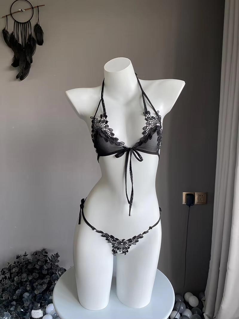 Women Panty Lace Tie Thong Seamless Bra Triangle Panty Set Sex Low Waist Lingerie Female Underwear G-string Thin Threads Briefs