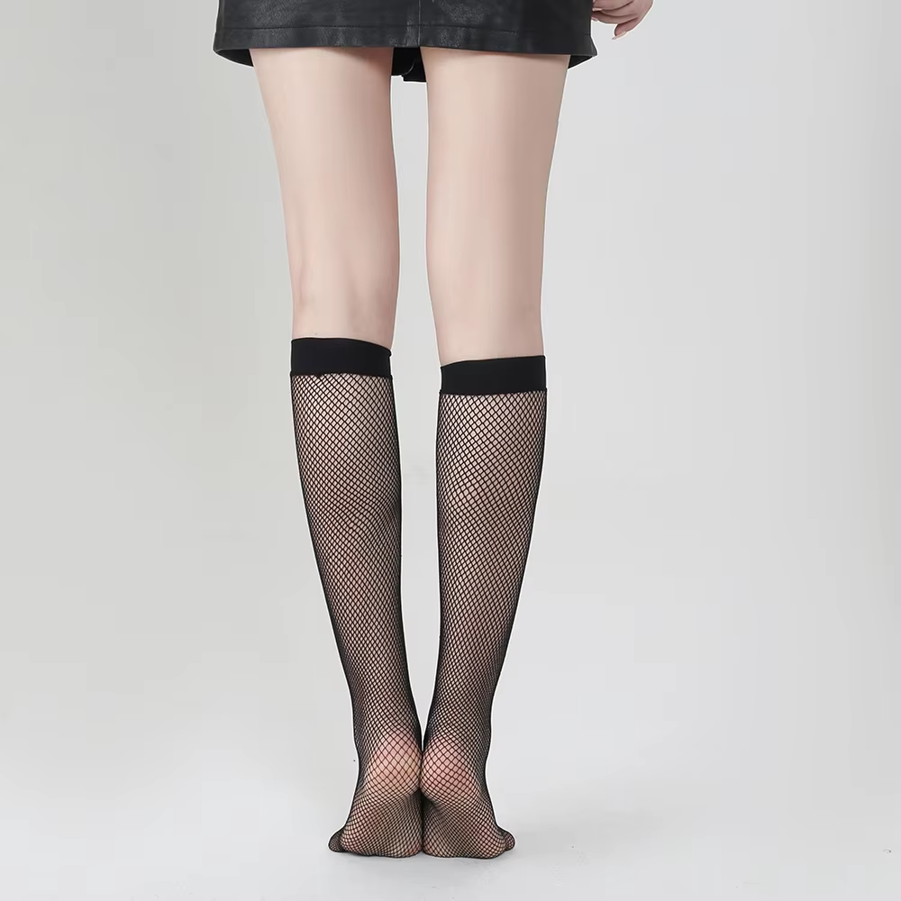 Women's Black Fishnet Knee High Socks Stylish Black Hollow Out Mesh Stockings